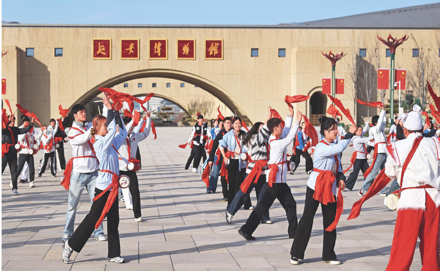 西安体育学院师生体验传统非遗项自安塞腰鼓