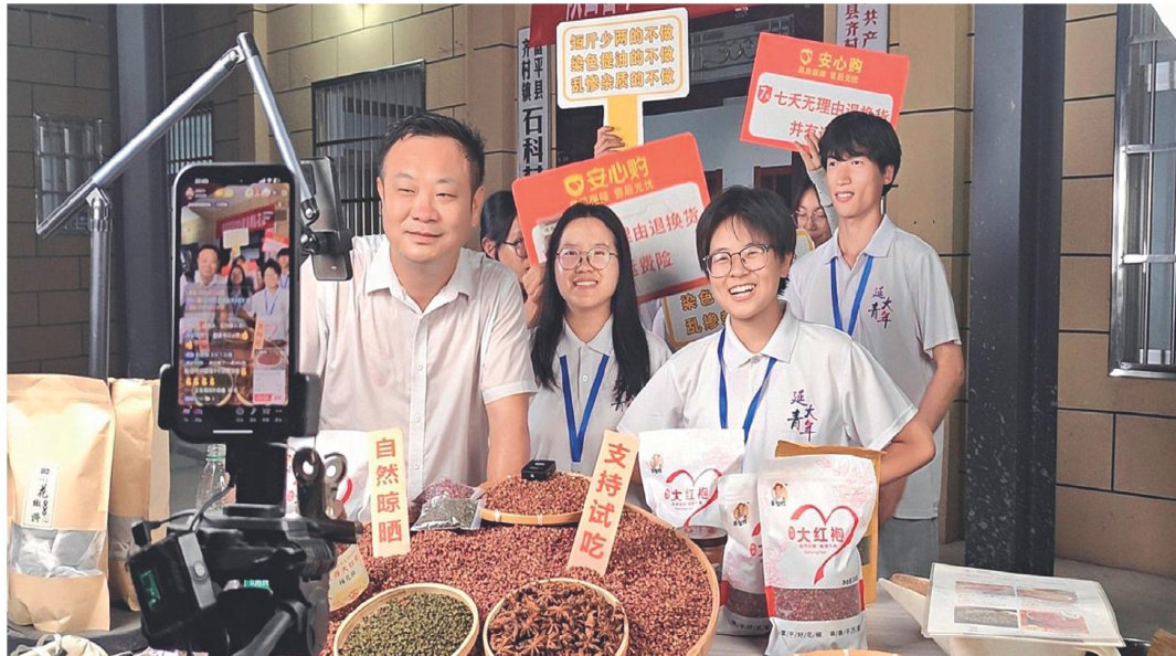 团队成员与村支书进行花椒助农直播