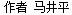 马井平,1967 年生,黑龙江省富裕县人,现居住河北省廊坊市。中国音乐文学学会会员、中国音乐著作权协会会员、廊坊市作家协会会员。1996 年开始发表作品作品散见《今日消费报》、《时代潮》、《中国乡村杂志》、《黄河文学》、《燕赵词作家》、《新歌诗》等报刊杂志。
