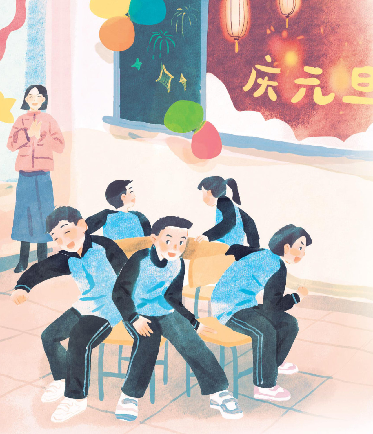 31日下午,教室里张灯结彩、热闹非凡,彩带、彩灯、亮闪闪的小星星、五彩缤纷的气球与红艳艳的充气王冠,还有醒自的红色充气棒,把教室装扮得如同华丽的舞台。电子屏幕上喜气洋洋的画面配着欢快的音乐,把每个同学的脸都映成了春天的花儿。桌椅紧靠着教室的三面墙壁,围成两圈“U”形,同学们围坐在一起,欢声笑语不断,兴奋与期待溢于言表。(剩余1075字)