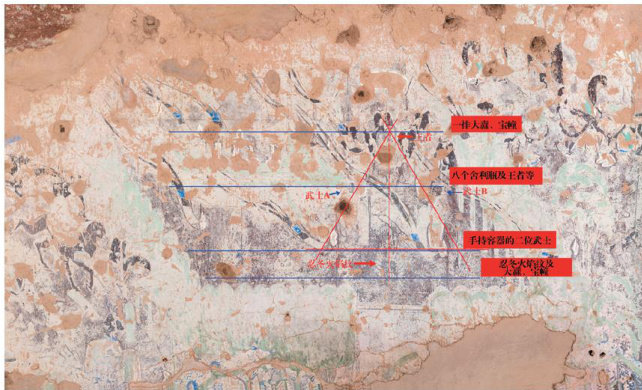 麦积山石窟第127窟位于麦积山西崖最高处,窟内平面近 50m2 ,学界多数学者认为该窟应开凿于西魏时期①。《涅槃经变图》(为便于阐述,以下皆称本图)位于窟内北壁上部,横长式构图,纵2.20,横 8.26m 。(剩余6911字)