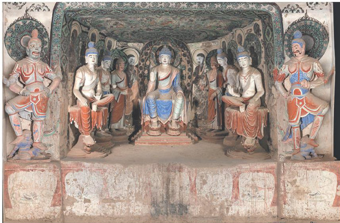 敦煌莫高窟现存492个洞窟中,半数以上的洞窟彩塑历经后世不同程度的重修、重塑与重绘,尤以清代至民国时期的修缮活动最频繁。这些历史修缮虽使部分彩塑得以存续,却也导致其造型与色彩较之前有很大出入,多数作品偏离原作的神采气韵。这就要求复原探索必须建立在严谨的学术研究基础之上,在充分掌握造像内容与风格演变规律的前提下,对破损、缺失或经后代补塑重修的造型部位,进行有据可依的复原性重塑,杜绝主观臆造。(剩余7972字)