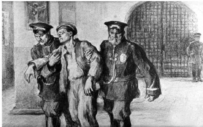 等到聂赫留朵夫同陪审员们一块儿走进法庭,昨天的那种程序就开始了,又是大叫一声:“升堂!”那三个衣领绣花的人又登上高台,又是肃静,陪审员们又在高背椅上坐下,又是那几个宪兵,又是那幅画像,又是那个司祭。