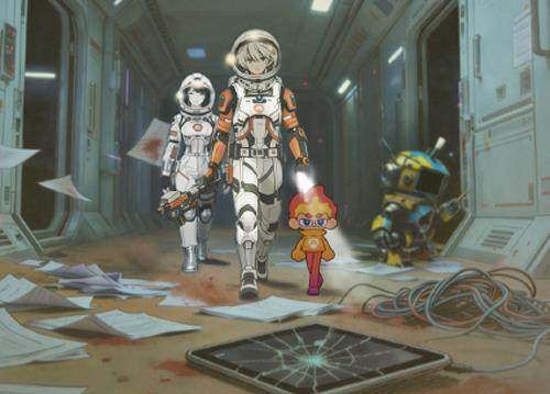四位少年兵分两路探查生保舱和生物舱是否具备居住条件时,周天翎和鲁小班在前往生物舱的路上发现了新状况。由于通道光线昏暗,火星服头盔的面罩启动了热成像功能,辅助少年们探测前方路况。周天翎走在前面,面罩上赫然出现两片淡黄色光晕,说明前方有热源。但是,在这个只有散乱杂物的通道里,还能有什么呢?
