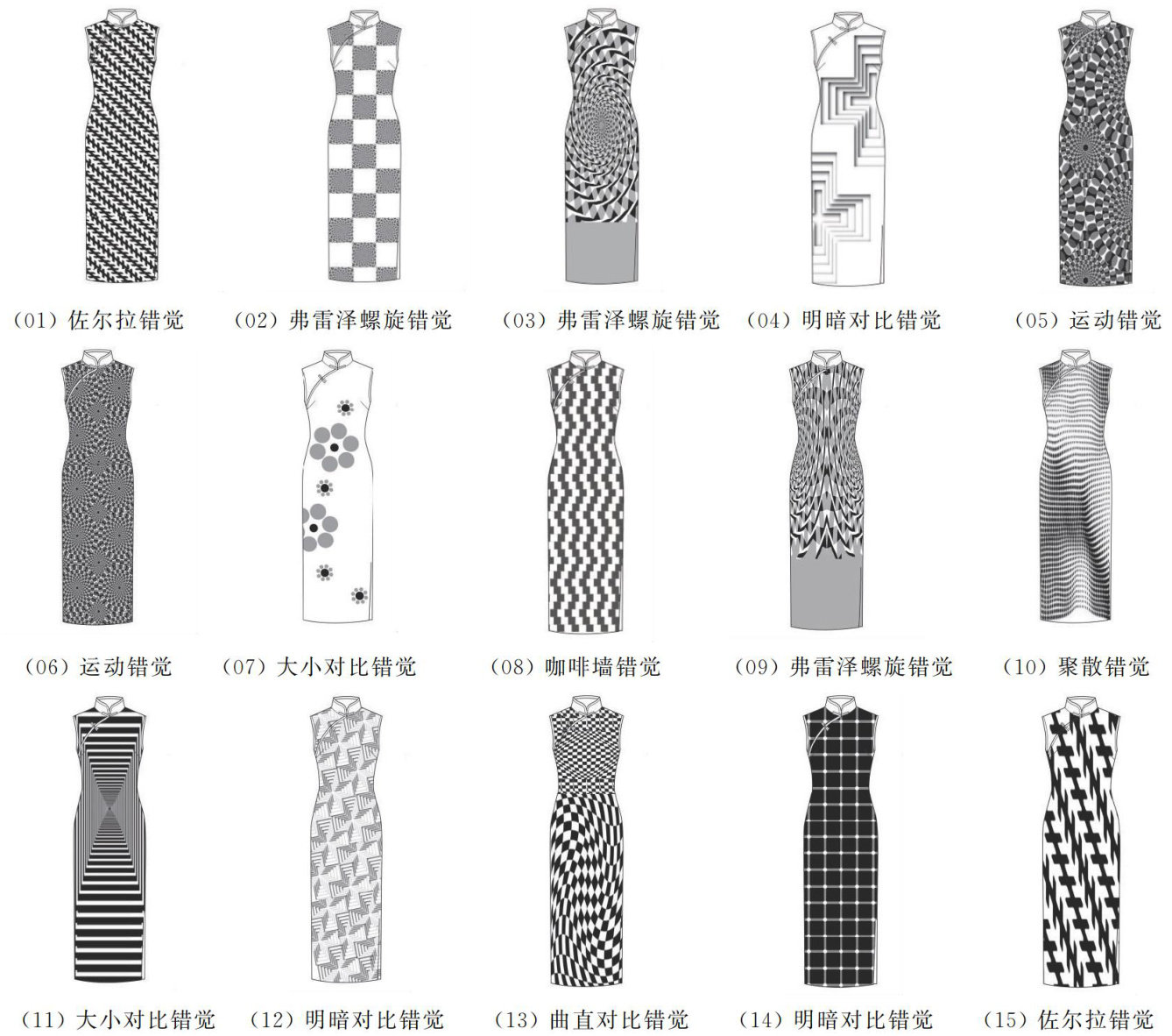旗袍作为中国近300年来的代表性女装,被誉为“国服”,其现代化创新是传承与发展的重要途径之一[1]。纹样作为服饰的视觉焦点,其创新尤为关键。其中,几何纹样与现代设计理念高度契合,而视错觉艺术作为一种能够创造动态与趣味体验的视觉形式,为旗袍纹样创新提供了新的可能性[2-5]。(剩余10388字)