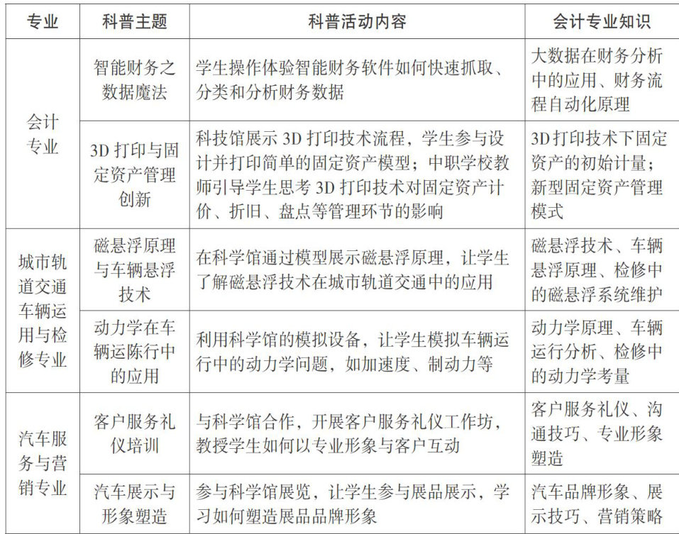 本文聚焦中职学校与科技馆的馆校合作模式,深入探究科普活动的开展策略与实践。通过剖析中职学校的专业特色和实际需求,精心策划一系列针对性科普活动方案。研究表明,馆校合作成果斐然,显著提升中职学生的科学素养与专业技能,为中职教育多元化发展提供新思路、新方法。馆校合作是一种创新教育模式,为中职科普教育注人活力。(剩余4669字)