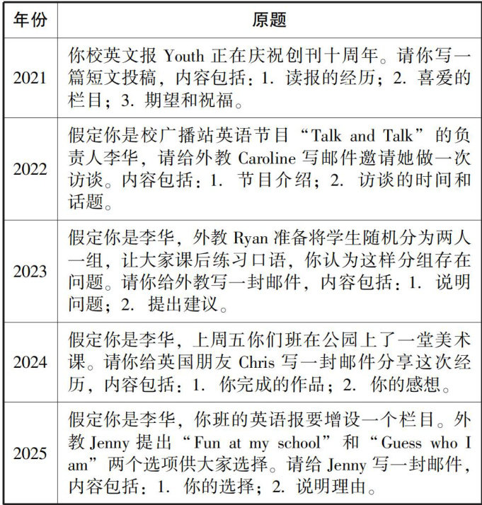 高考英语书面表达部分的应用文写作,旨在考查考生在特定情境下运用英语完成真实交际任务的能力。近五年来,该题型已形成鲜明且稳定的风格。深入剖析其命题规律,对于优化备考方向、提升备考效率具有至关重要的指导意义。本文将以2021年至2025年的全国I卷的应用文为例来探析其命题规律以及备考启示,助力考生高效备考。(剩余4393字)