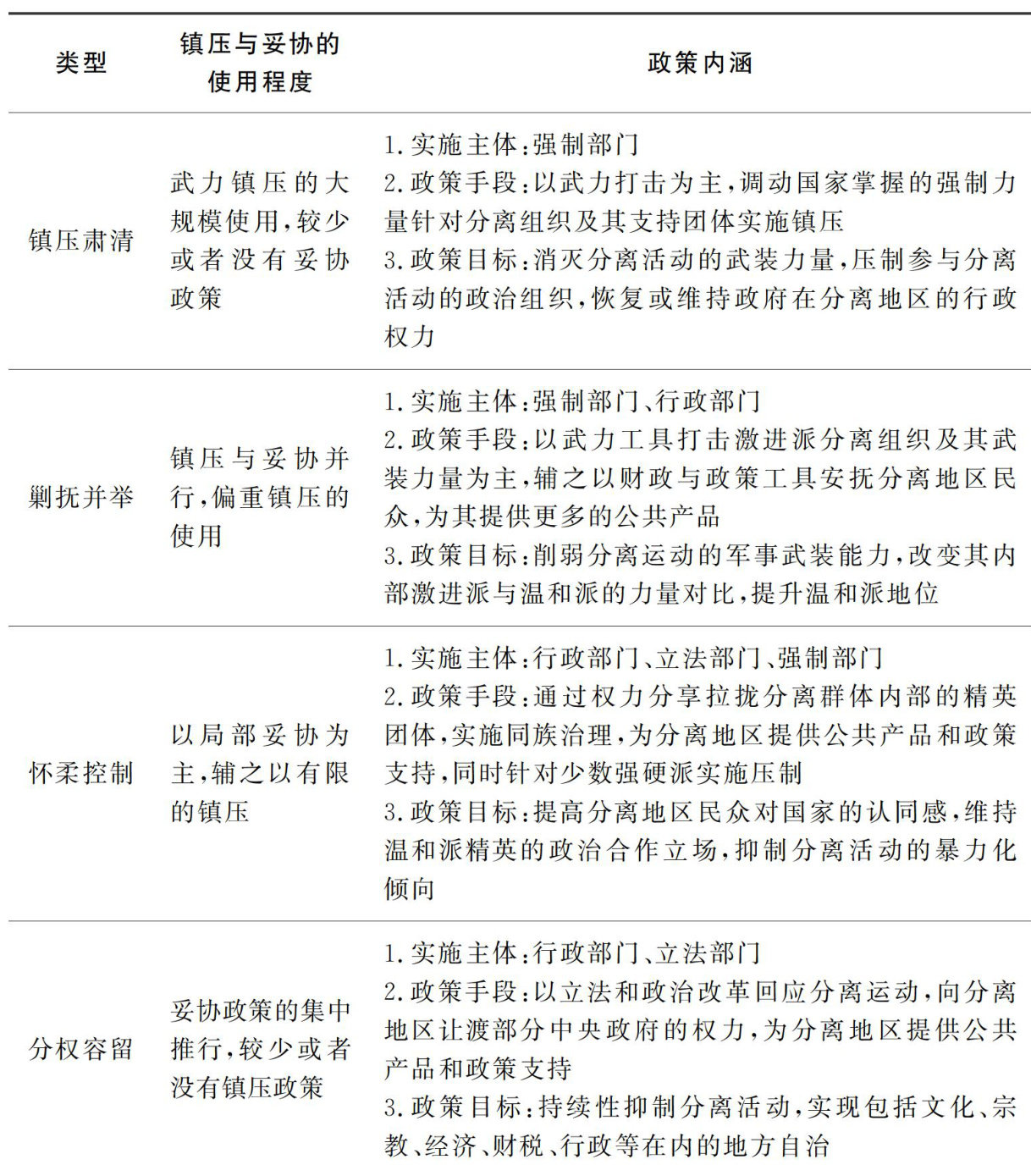 【内容提要】二战后东南亚诸多国家长期面临如何治理分离主义冲突的问题,其应对方式不仅差异显著,而且近年来发展出了更为精细化的综合治理政策。既有研究未能充分解释影响东南亚国家应对选择的因素及其机制。本文从战略互动视域出发改进笔者提出的政策供需解释,构建了“分离态势一军政互动”的分析框架,强调复合行为体面临复杂的外部和内部互动过程,并区分了镇压肃清、剿抚并举、怀柔控制以及分权容留等四种应对方式。(剩余25992字)