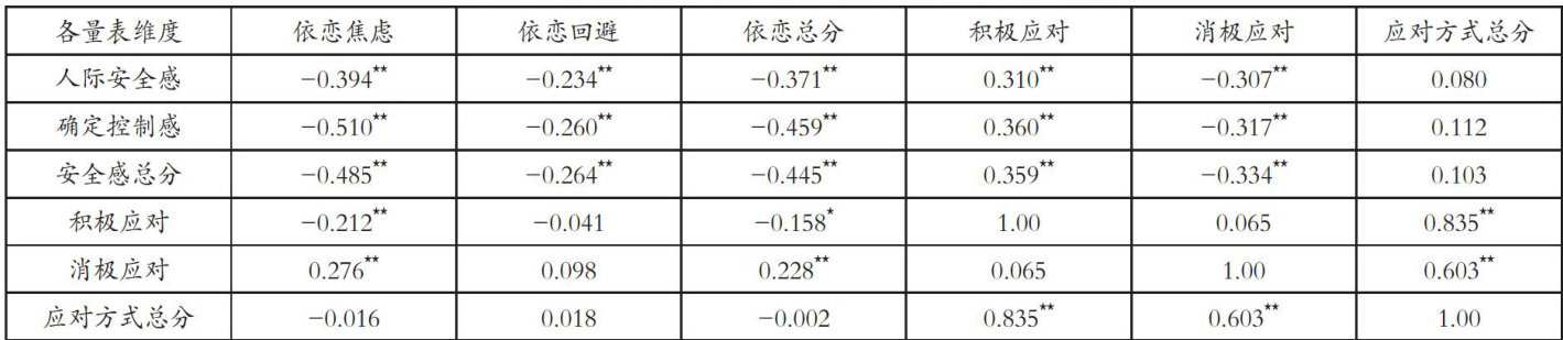 大学生成人依恋、应对方式与安全感的关系研究