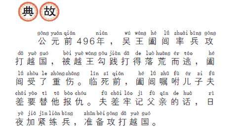 释义:卧薪:睡在柴草上。胆:苦胆。春秋时,越王勾践为了报被吴王夫差打败之仇,他夜里睡在柴草上,吃饭睡觉之前都要尝一尝胆的苦味,以激励自己不忘耻辱。后多比喻刻苦自励,奋发图强。