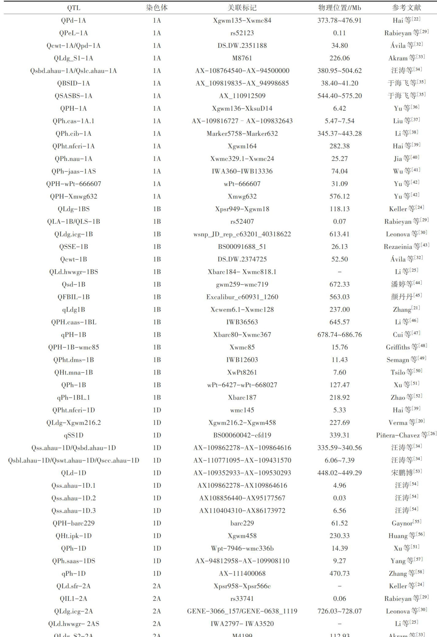 Key words:wheat;lodging resistance;genetic locus;molecular marker;gene;research progress
