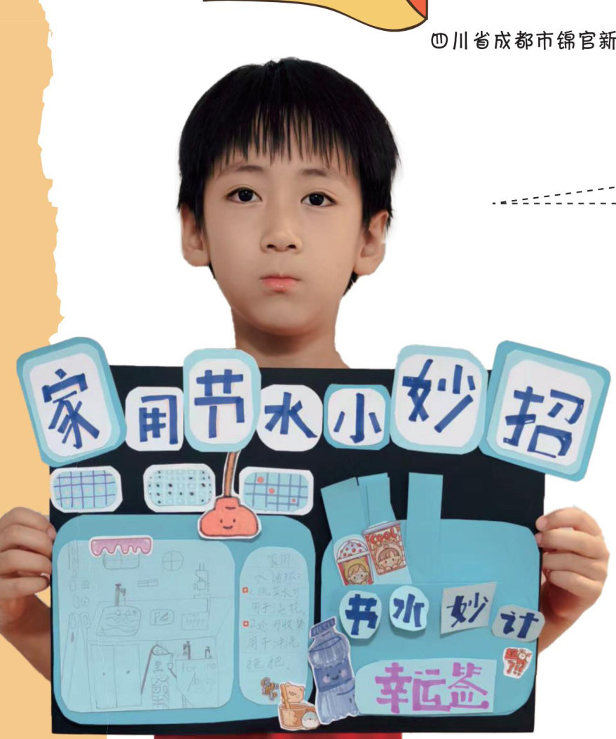 我这份手抄报,是左右对称结构的。在左边,我设计了一套家用厨房节水循环系统,比如,我们可以把洗过菜的清水收集起来,用来浇灌(jiaoguan)花草,或者冲洗拖把和马桶。这种简单的水循环,能节约不少家庭用水呢;在手抄报的右边,我设计了七张“节水妙计幸运签(qiān)”,用互动抽签的形式让节水知识更生动有趣。(剩余157字)