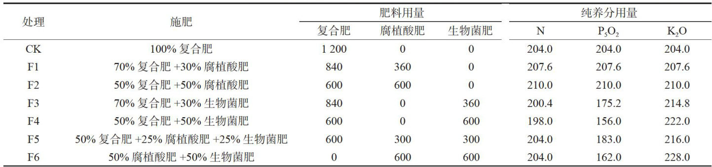 Abstract:Thisstudyaims toexplorethepotatocultivationmeasuresofreducingfertilizerandincreasingeficiency.Thelocal mainpotato variety 'Xingjia 2'was cultivated with seven fertilization treatments: 100% compound fertilizer (CK), 70% compound fertilizer +30% humicacid fertilizer(F1), 50% compound fertilizer + 50% humicacid fertilizer(F2), 70% compound fertilizer + 30% microbial fertilizer (F3), 50% compound fertilizer + 50% microbial fertilizer (F4), 50% compound fertilizer + 25% humic acid fertilizer + 25% microbial fertilizer (F5),and 50% humic acid fertilizer +50% microbial fertilizer (F6). The effect of substitution of chemical fertilizerwithicrobialfertilizerandhumicacidfertlirontheyieldandqualityofpotatosandthephysicalandcheical properties ofsoilwasdiscused.Theresultsshowed thattheapplicationofmicrobial fertilizerand humicacidfertlizercombined withchemical fertilizerimprovedthepotatoyieldandquality.Thecombinedfertilizationtreatments increasedthepotatoyieldby 2.71%-17.88% compared with the control (CK),with F5 achieving the highest yield,which was 25498.95kg/hm2 .Theyields of different treatmentsfollowed the trendof F5>F4>F6>F3>F2> F1>CK .ExceptF3,other treatmentshad higher solubleprotein content,soluble starch content,reducing sugar content, and dry rate thanCK.F2wasmoreconducive to the increasesin solubleprotein content,soluble starch content,and dry rate of potato tubers,while F4 was more conducive to the increase in reducing sugar content of potatotubers.Furthermore,thesubstitutionofemicalfertlrithmicroialfertlandumicacidfrtlesinifcantysed the soil pH value,ncreasedthecontentofrganic matter,alkali-ydrolyzednitrogen,vailablepotassium,andavalableposporus inthe soil,andeancedteactivitisofscrase,akalinepospatase,urease,andatalaseintesoil.oreover,teaplicatiof microbialfertilizerwas moreconducivetotheaccmulationofsoilavailablefertilizerthanthatofhumicacidfertlizerInsummary whencompoundfertiler,microbialfertilzer,andhumicacidfertilzerwereusedasbasefertiler,theecommendeddosageas compound fertilizer 600kg/hm2+ humic acid fertilizer 300kg/hm2+ microbial fertilizer 300kg/hm2 ,which improved the yield and quality of potatoes and the quality of soil.
