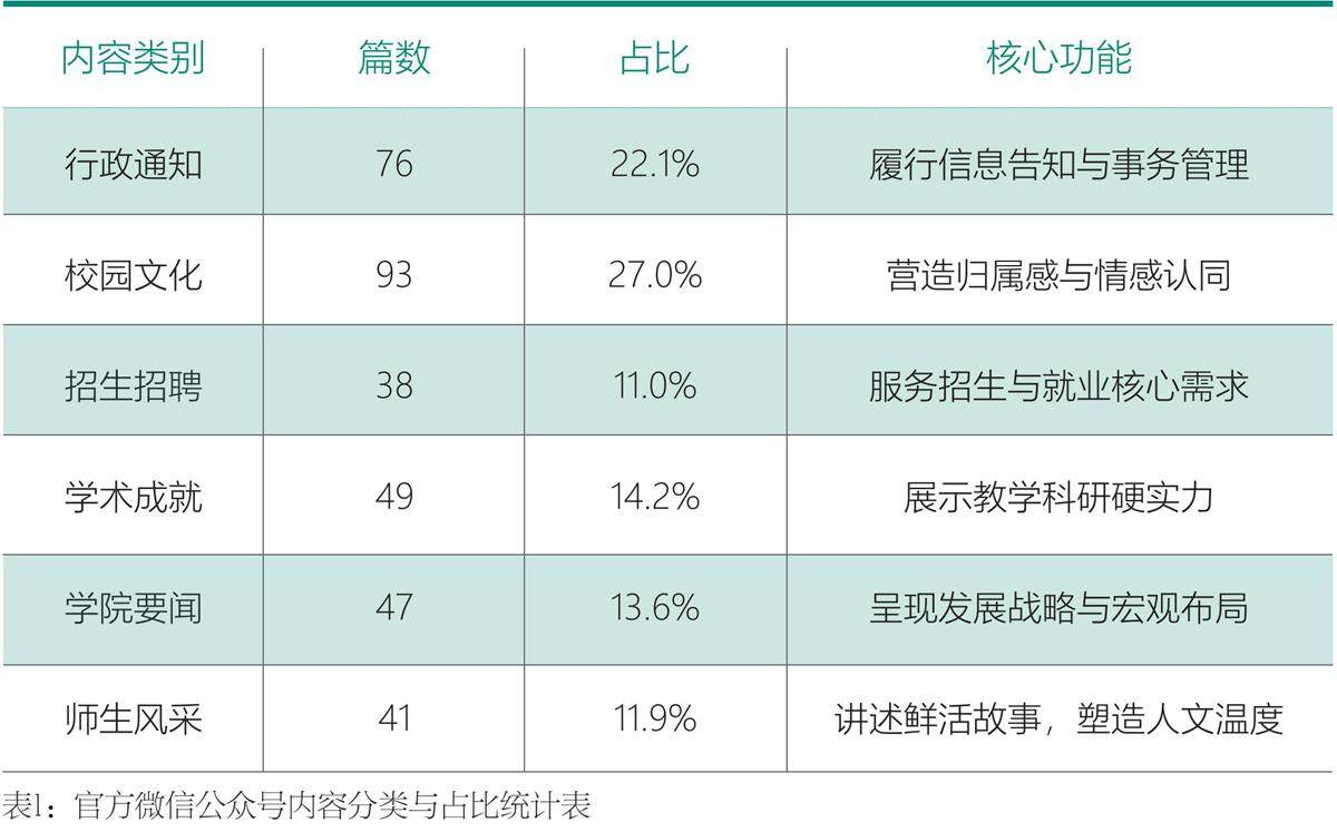 随着融媒体时代的到来,高校官方微信公众号已成为高校品牌形象塑造与师生服务的主要阵地。本文以南京医科大学康达学院官方微信公众号为研究对象,通过对该账号2023年1月1日至2025年9月30日期间共344篇推送内容进行量化分析与个案研究,深度剖析其运营现状。研究发现,其运营存在内容供需错位导致用户黏性不足、医学特色缺失致使品牌辨识度模糊、互动仪式链断裂造成用户参与度低以及生产机制不稳引发传播效果打折扣等核心问题。(剩余4949字)