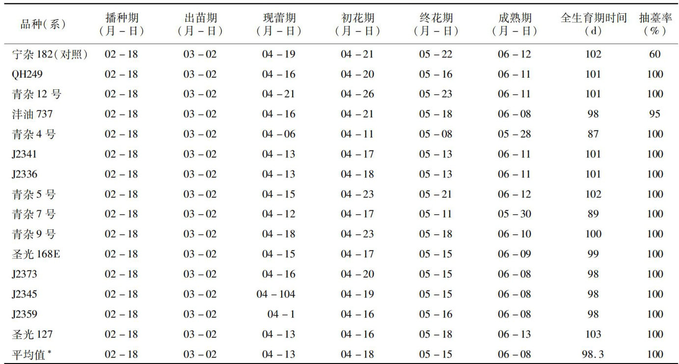 适合江苏地区种植的春油菜品种(系)鉴定与筛选