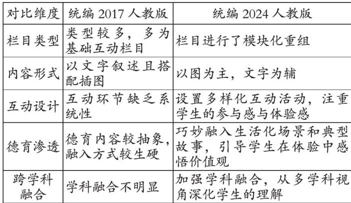 辅助文是教材的重要组成部分,指的是起到补充、说明、引导、拓展教材主题文本作用的内容。作为助读或助学系统中的关键部分,辅助文是教材的“支架体系”,既体现教材编写者的意图,又能引导学生的学习活动,提升学生的课堂参与度,突出学生的主体性,是教材得以科学高效使用的重要工具。小学道德与法治2024版教材(以下简称“新教材”)对辅助文系统进行了重构,通过研究新教材辅助文栏目的设计范式与功能升级,能够明确其与核心素养培育目标的对接机制,为教师依据新课标要求精准使用教材提供实践参照。(剩余7420字)