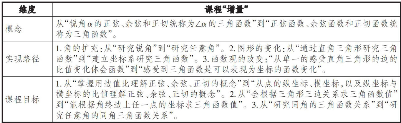《普通高中数学课程标准(2017年版2020年修订)》(以下简称"《高中数学课标》")指出“三角函数是一类最典型的周期函数”,而《义务教育数学课程标准(2022年版)》(以下简称“《义教数学课标》")并未把三角函数放在函数板块,而是放在“图形的变化"中的图形相似部分。由此可见,初中对于三角函数的认知,只停留在图形部分,而高中则是要求会用三角函数解决简单的实际问题,体会可以用三角函数建构刻画事物周期变化的模型。(剩余7765字)