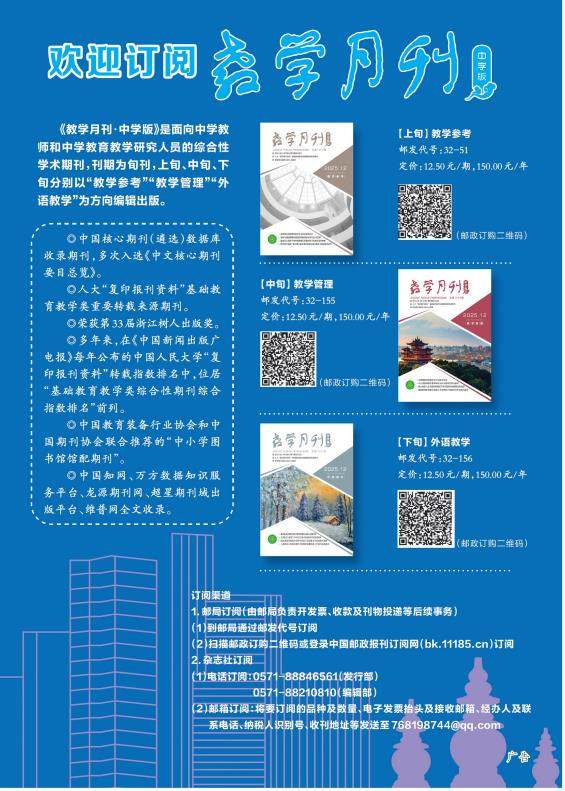 欢迎订阅《教学月刊·中学版》