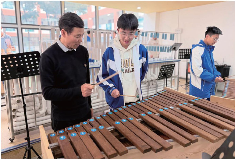 一片树叶抵在唇边,清风化成了旋律;几截水管握在手中,敲打间奏出《歌唱祖国》的铿锵;寻常的玻璃杯注入深浅不一的水,指尖轻叩,清脆动人。在音乐教师代文先的课堂上,音乐从未被锁进教室,也不曾被困在五线谱之间。它就藏在生活的褶皱里,等待着一场耐心的求索,把它轻轻奏响。