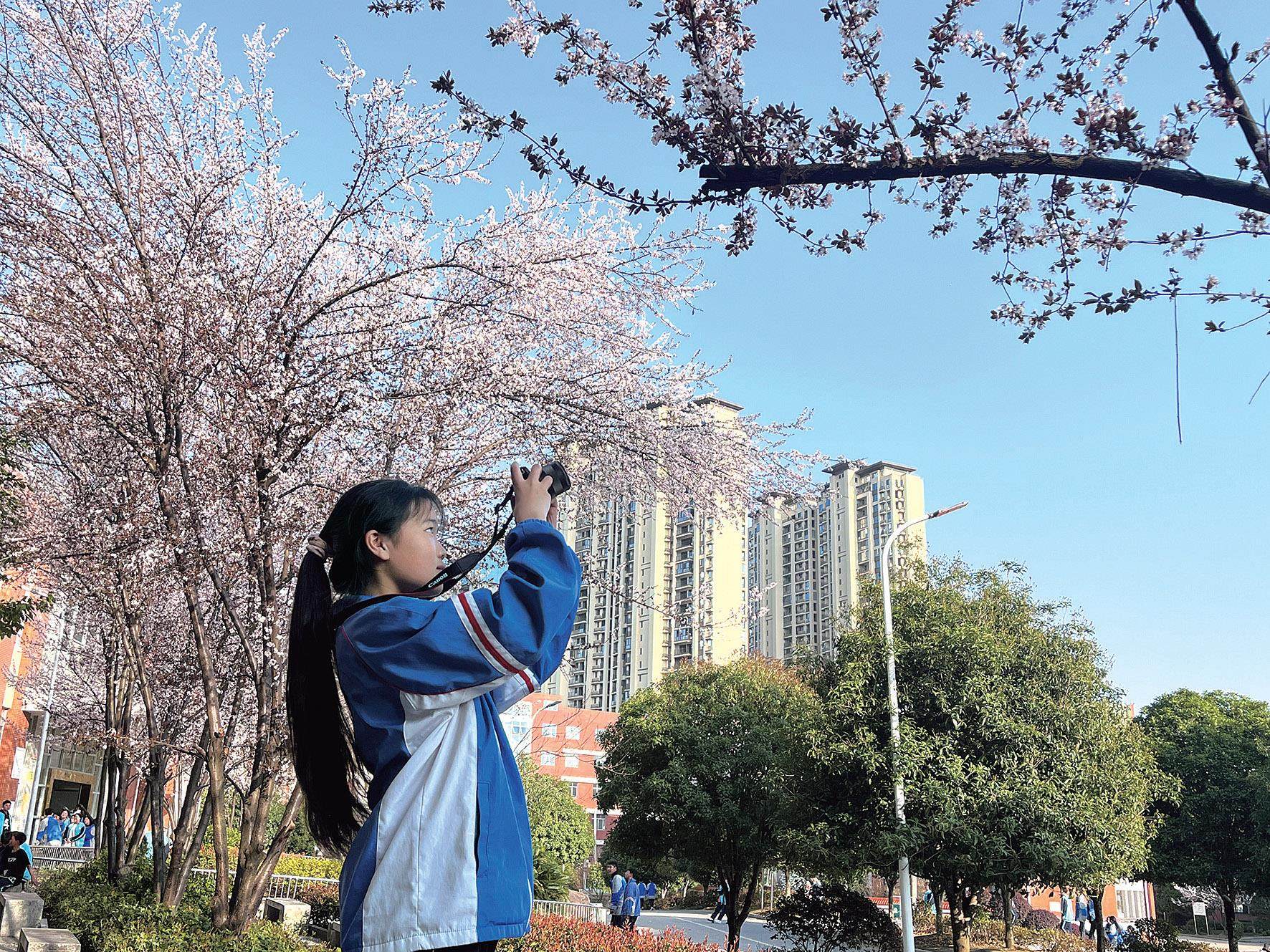阳春三月,莺飞草长,玉兰盛开,樱花灿烂,桃红柳绿,姹紫嫣红。每一棵树,都在努力发芽;每一朵花,都在奋力绽放。校园的一切,在春日里揣着期望,生动、明媚。