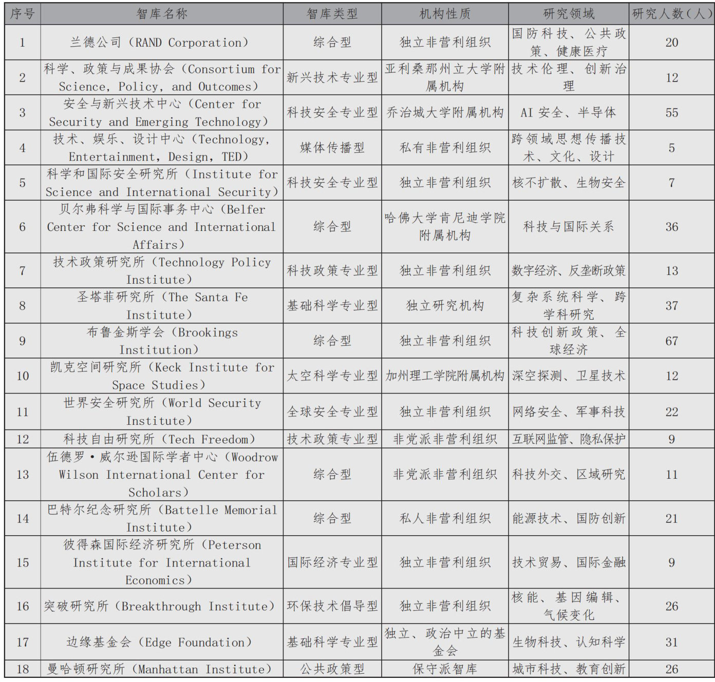 根据美国宾夕法尼亚大学发布的《2020年全球智库报告》(2020GlobalGoToThink TankIndexReport),在全球70强科技智库排名中,美国有20家智库入选,占比接近 30% ,在技术安全、创新政策、社会影响等领域占据主导地位。(剩余7892字)