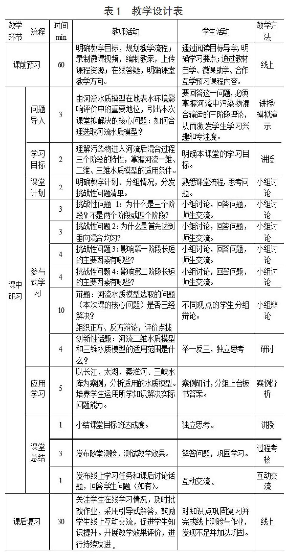 摘 要:为适应工程教育专业认证对课程教学的新要求,针对传统教学模式的不足,以“污染物进入河流后混合过程的三个阶段”这一课堂教学为例,基于翻转课堂理念和慕课线上资源和BOPPPS教学设计方法开展了混合式课堂教学探索。采用“课前预习+课中研习+课后复习”的线上线下混合型教学设计,以问题为导向,以学生为中心,融合了线上导学、翻转课堂、案例分析、小组辩论、模拟仿真、过程考核、课程思政等多种教学方法,提高了教学效果,可为新时代教学改革提供参考。(剩余3149字)