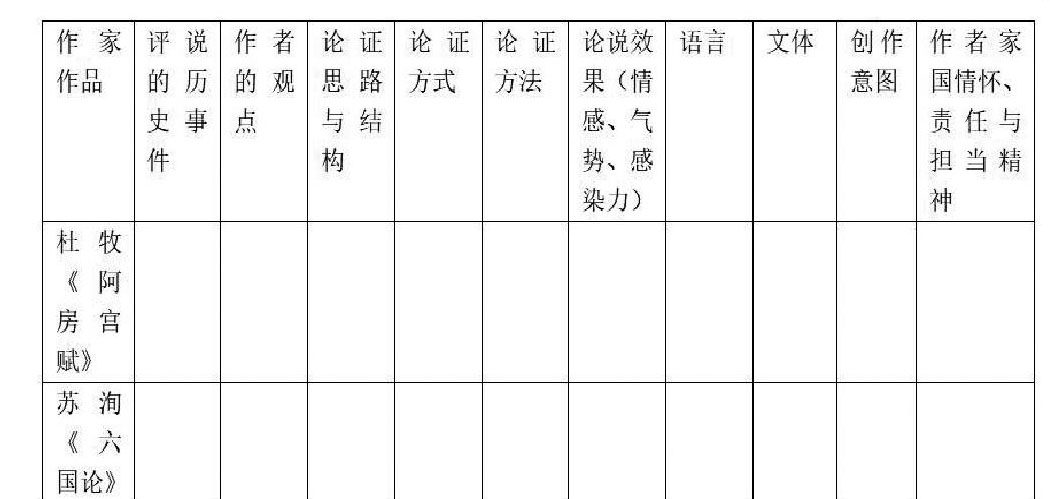 关键词:群文阅读教学;《阿房宫赋》《六国论》教学设计