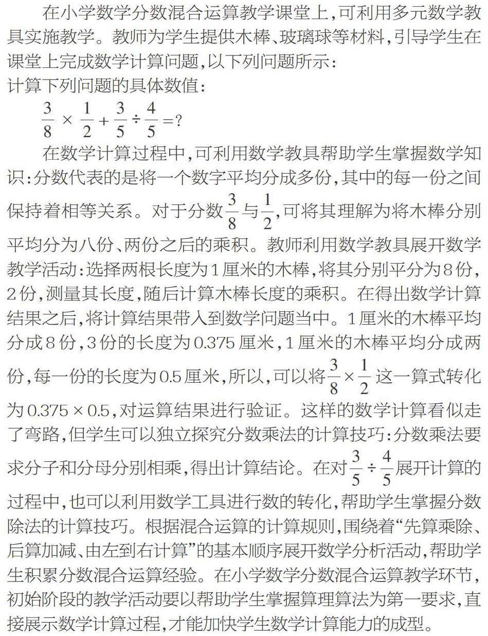 分数计算是小学数学教学活动中的重点模块,相较于其他的数学计算任务,分数计算板块的教学难度更大:学生不仅要掌握通分、约分等基础数学知识,还要归纳数学计算法则。在小学数学分数混合运算的教学中,学生不会算、算不清的学习问题依旧存在。针对小学生的数学学习特点,要强调分数知识的创新讲解,不断优化数学计算过程。(剩余4833字)