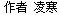 凌寒,本名姚笑梅,沈阳市作家协会会员,辽宁省散文学会会员。散文、诗歌、歌词等作品散见《芒种》《辽沈晚报》《沈阳日报》《《沈阳晚报》《歌词天地》《音乐生活》等报刊。