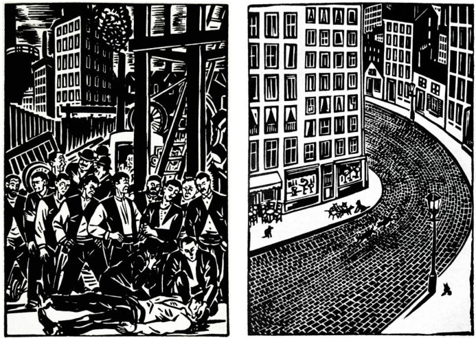 麦绥莱勒作为20世纪最负盛名的版画家之一,其旺盛的创作热情和光耀夺目的黑白构建出质朴而又深刻的视觉图式,创造出一幅幅批判资本主义社会的木刻作品。1931年,伴随着中国新兴木刻运动的开展,鲁迅先生将麦绥莱勒的木刻版画介绍到国内,并于1933年自费编选和出版了麦绥莱勒四部木刻连环画。麦绥莱勒的作品被引进国内并作为典范学习的原因有二:其一是作品具有高度的社会批判性,符合当时的中国国情,与鲁迅“揭出病痛,引起疗救的注意”的文学主张不谋而合;其二是其作品黑白对比强烈,具有强大的视觉冲击力和情感张力,堪称表现主义木刻的典范,是高度凝练的艺术。(剩余4930字)