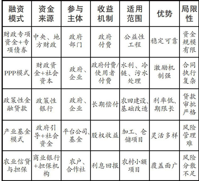 农业基础设施涉及农田水利、农村道路、现代种养设施、冷链仓储、农产品加工与流通、数字农业平台等多个方面,具有资产分布广、单体规模小、建设周期长、收益形成缓慢且波动大的特点。对于农业基础设施项目,传统财政投入无法覆盖增量需求,单一的信贷支持在风险管控与期限匹配上面临压力,而社会资本参与度受制于现金流不稳定、抵质押品不足与治理成本较高等因素。(剩余2582字)