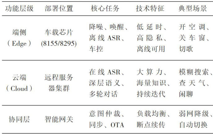 【Abstract】With the deepening of the software-defined vehicle concept,automobiles have evolved into intellgent mobile erminals,and the safety and convenience of in-vehicle human-machine interaction have become the core indicators ofcabin inteligene.Traditional touch interaction is prone to causesecurity risks.Early in-vehicle voice systemswere limited bytechnical bottlenecksand found itdifficult tocope withcomplex in-vehicleenvironmentsand multi-round interactionrequirements.Therefore,thispaper conductsan in-depth discusiononthedesignof automotive voiceinteractionand intelligentcontrol systems basedonartificial inteligence technology,hoping toprovidetheoetical references and engineering practice paradigms for buildinganew generationof inteligentcabin interaction ecosystem hat understands people and recognizes scenes.