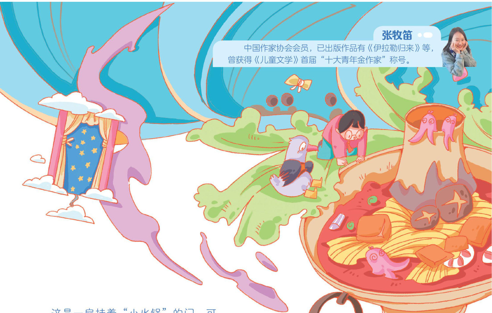 每道门下面都吊着一样东西长满青苔的礁石、棉絮般的云彩、冒着热气的小火锅…几十道门从白光中涌出,活蹦乱跳,仿佛是彼此失散的伙伴,接着像是得到了统一的指令,所有的门几乎同时打开了,门后头呈现出各种各样的生动景象。