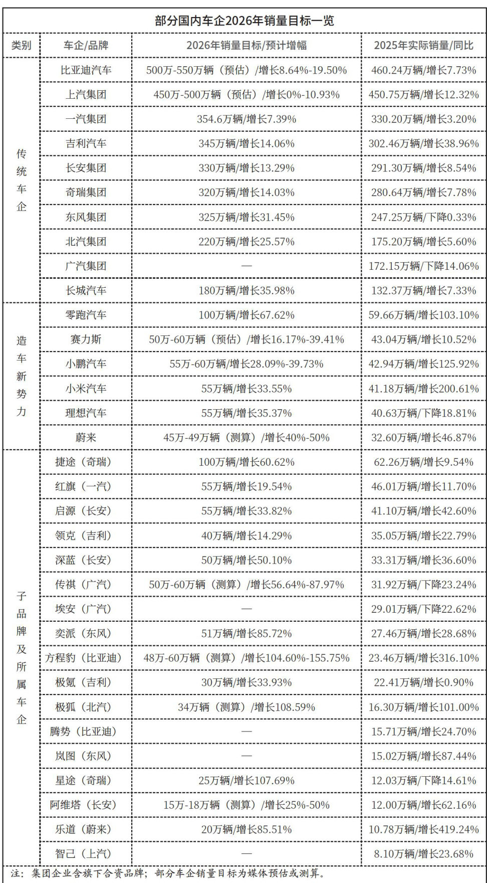 2026年开年,国内部分车企纷纷公布了新一年度的销量目标,从传统车企的规模稳增,到造车新势力的激进扩张,再到车企子品牌的差异化突围,各阵营目标既是基于自身发展需求的设定,也折射出对市场未来趋势的判断。(剩余3762字)