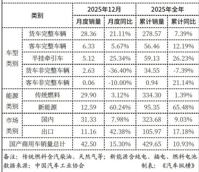 2025年国产商用车销量429.6万辆