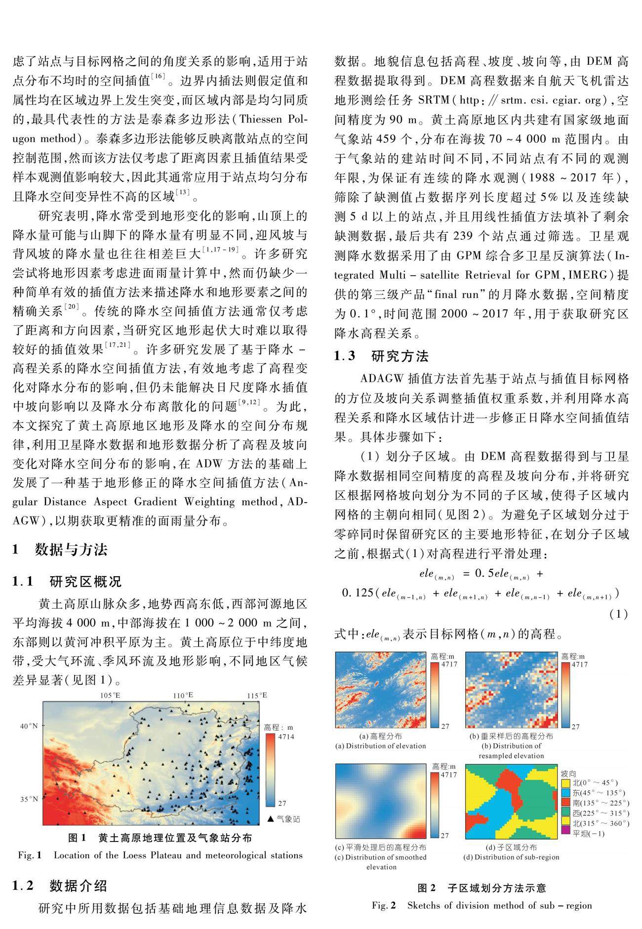 获取精准的降水空间分布信息对于水资源管理和洪涝灾害预报预警具有重要意义。地形变化对降水空间分布有显著影响,然而传统的降水空间插值方法难以考虑这种影响。基于黄土高原气象站1988~2017年长序列降水观测数据和高精度地形数据,建立了综合考虑站点与插值目标网格的位置、高程及坡向关系的降水空间插值方法(Angular Distance Aspect Gradient Weighting method,ADAGW),并在黄土高原地区进行应用。(剩余8062字)