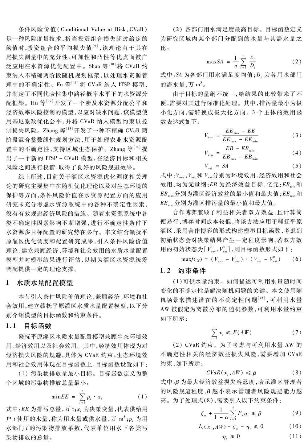 基于条件风险价值的灌区水质水量配置模型研究
