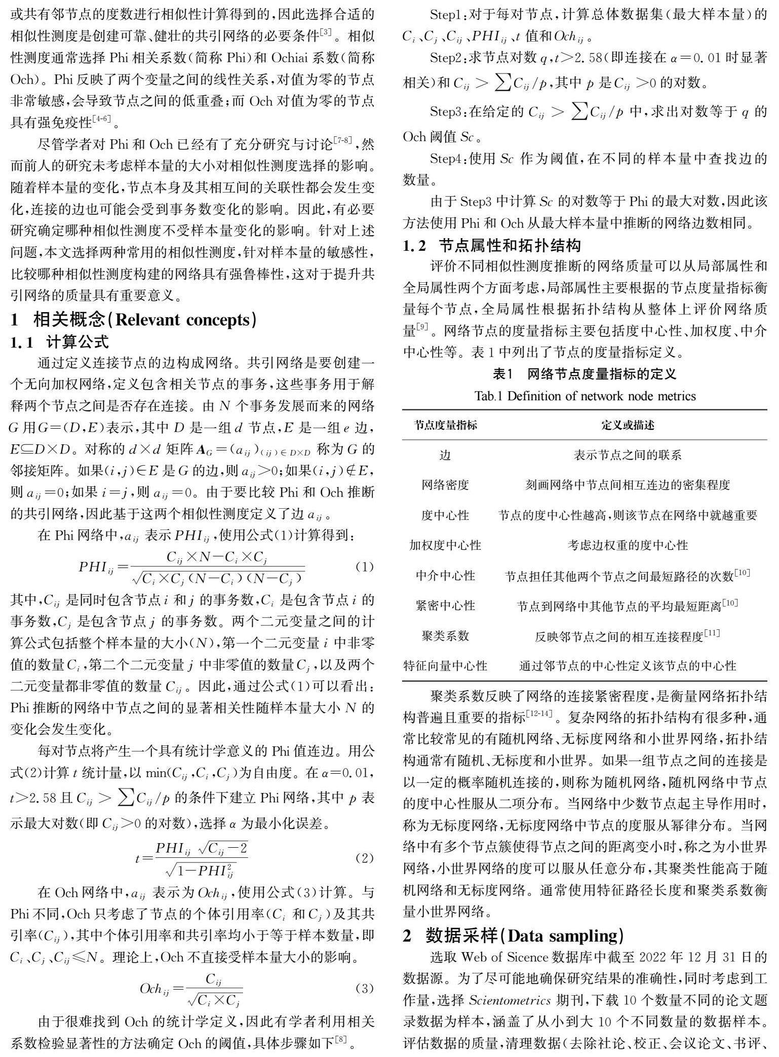 共引网络中样本量对相似性测度的选择影响
