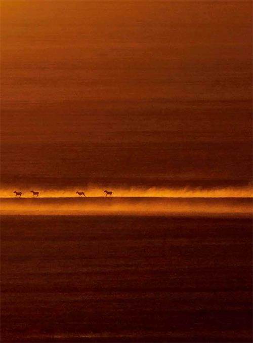群蹄破雾动高原。