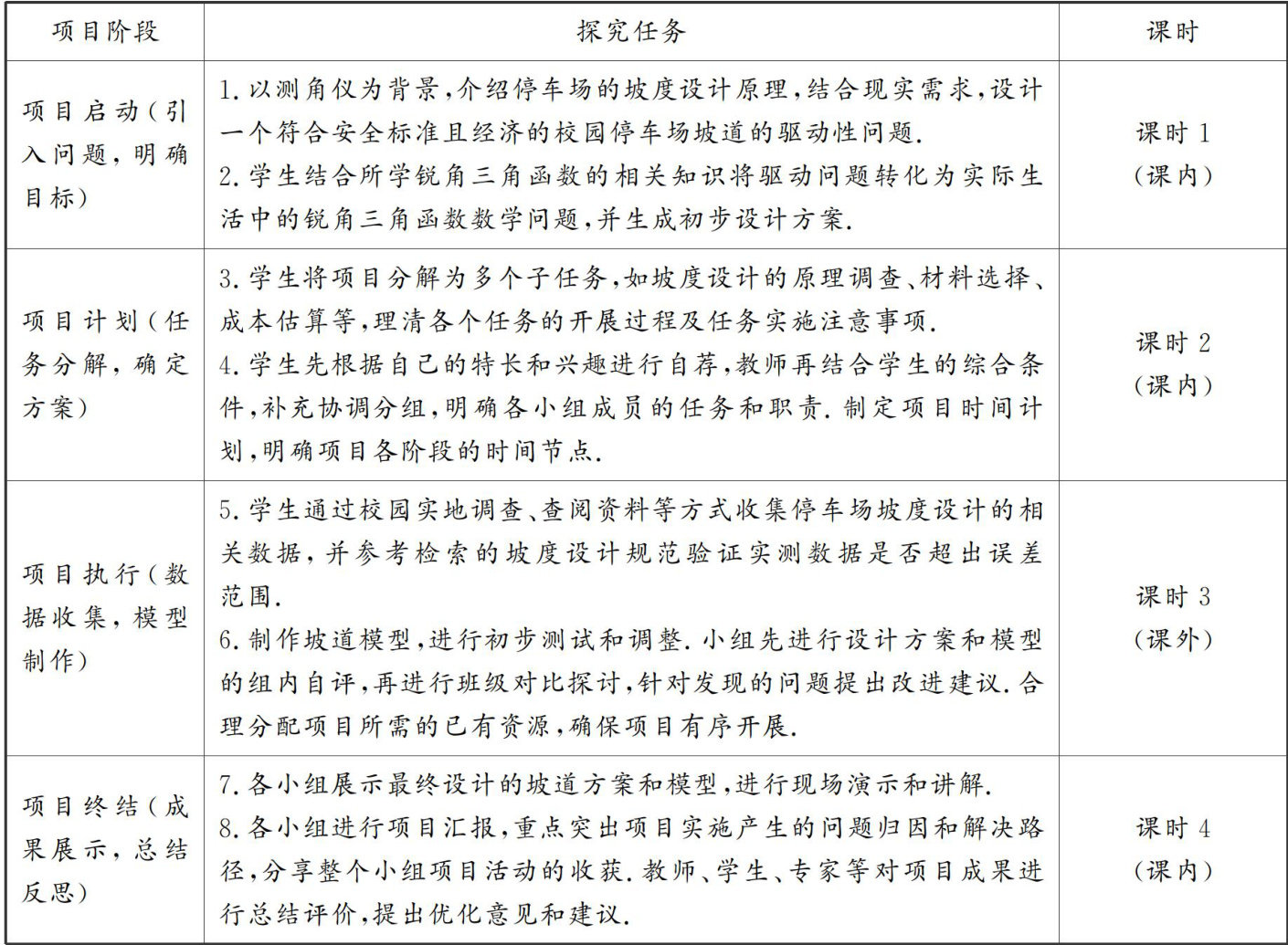 项目式学习作为一种创新教学模式,能激发学生的学习兴趣.增强学生学习主动性,提升学生的综合素养.本文以锐角三角函数在停车场出入口坡度设计中的应用为例,探讨项目式学习在初中数学教学中的教学设计.