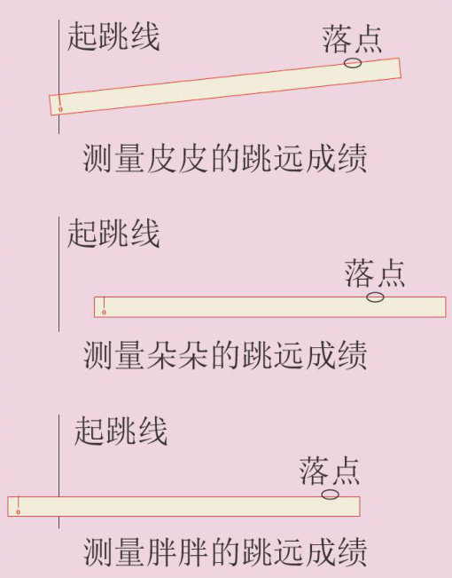 在跳远比赛开始前,山羊老师反复叮嘱乐乐:“你一定要认真测量选手们的跳远成绩,不能出错。”