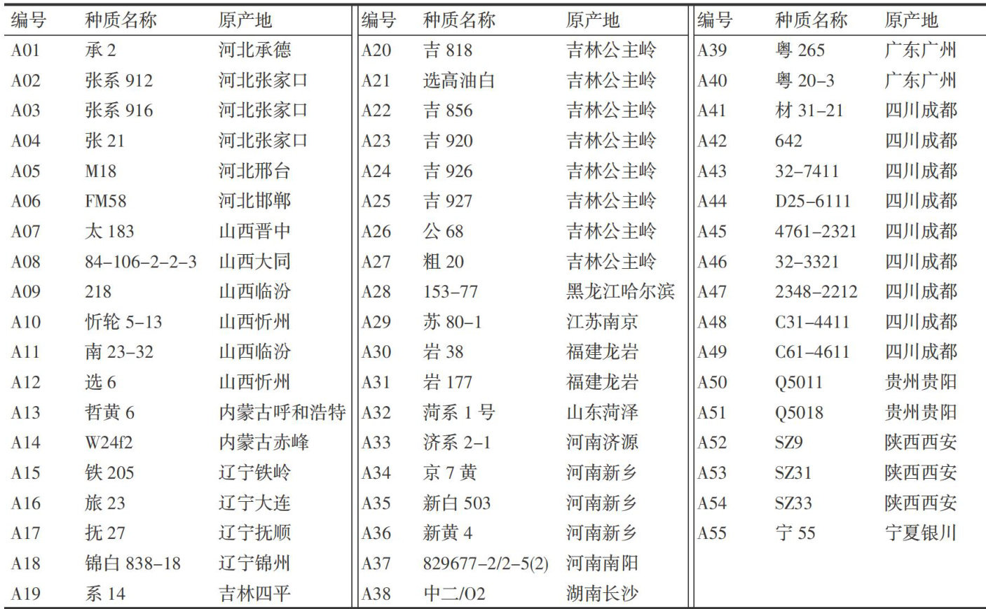 55份玉米种质资源表型多样性分析与优异种质筛选
