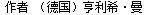 亨利希·曼(1871-1950),德国作家。生于吕贝克一商人家庭,其弟为作家托马斯·曼。一八八五年开始出版小说,一九○四年出版著名长篇小说《垃圾教授》,此书后被改编为电影《蓝色天使》,二十世纪三十年代在欧洲轰动一时。第一次世界大战期间,亨利希·曼坚决表示反战态度,一九一四年完成的小说《臣仆》遭查禁,到一九一八年才得以出版。(剩余11851字)