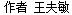 王夫敏,山东枣庄薛城区作协副主席、回归文学社金龙湖分社社长、徐州作家协会会员、徐州书法家协会会员、徐州摄影家协会会员、徐州地名协会会员、徐州书香苑文化协会会长,出版散文游记《天涯行歌》,以及多部散文合集。