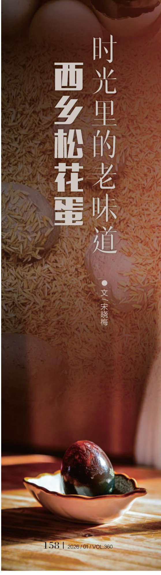 西乡松花蛋,蛋体离壳,易取易剥,以手摇之,有颤动感;剥去蛋壳,晶莹油润,呈透明的茶褐色,形似琥珀,具有弹性,表面满布美丽的晶状松枝花纹;蛋黄略带溏心,