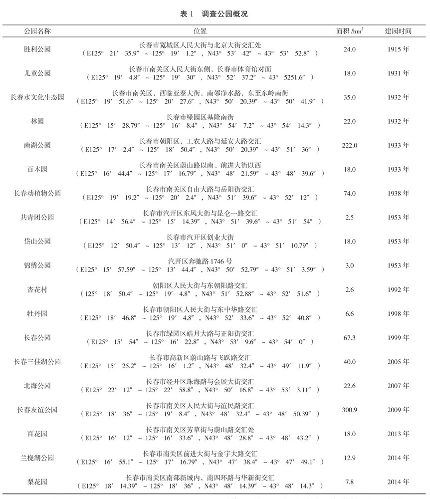 不同时期长春市公园园林树木物种组成与多样性研究