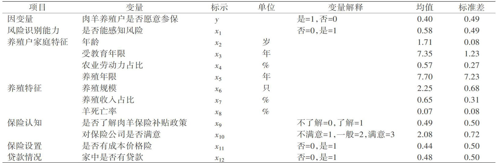 昌吉州东三县肉羊养殖户投保行为影响因素分析