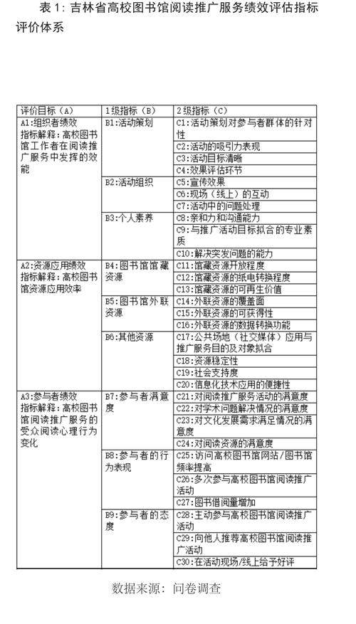 吉林省高校图书馆阅读推广服务绩效评估体系构建研究