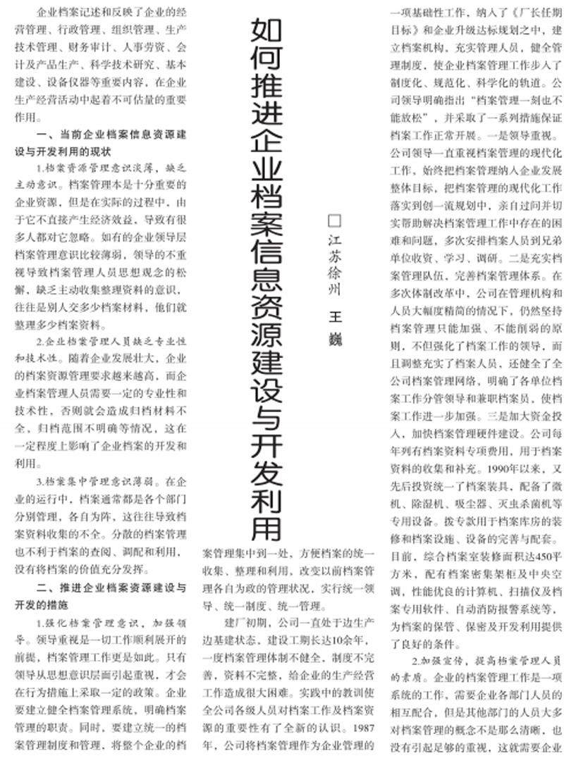 如何推进企业档案信息资源建设与开发利用