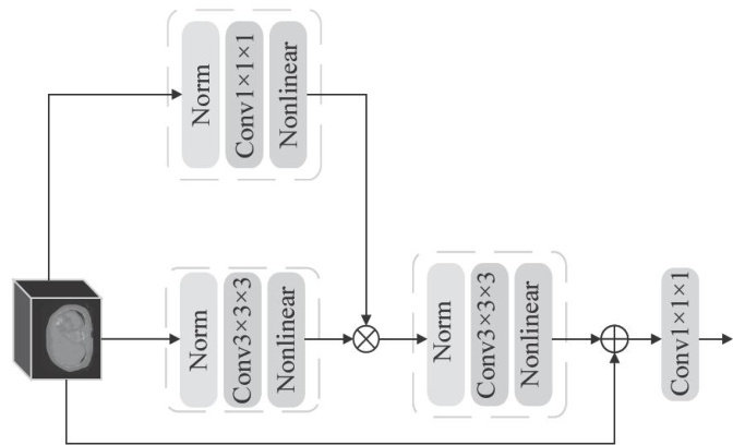 Abstract: Accurate segmentation of liver and liver tumors in three-dimensional Computed Tomography (CT) images is crucialforclinicaldiagnosisandtreatmentplanning.ToaddresstheissuesthatexistingConvolutionalNeuralNetwork(CNN) segmentationmethodsstrugle tocapturelong-rangedependenciesduetolimitedreceptivefelds,andTransformersegmentation methodsarerestricted inapplicationonthree-dimensional medicalimages with limitedsamples,this paper proposesanew 3D medicalimage segmentation model based on Mamba.The model contains a 3D gated spatial convolution module andachannel shuffle upsampling module, which extract spatial correlation features and common features,respectively.The two modules synergistically enhance themodeling abilityofthe modelfor global tructures,while simultaneouslyensuring precisebondary positioning.ExperimentalresultsontheLiTS2o17datasetshow thatthe Dice SimilarityCoeffcient (DSC)of liversegmentation reaches 96.42% ,and theDSC of liver tumor segmentation reaches 70.70% .In the generalization experiment on the 3D-IRCADb dataset,the DSCsof liver and liver tumor segmentationreach 96.79% and 67.10% ,respectively.Resultsof multiple comparative experiments further verify the superiority and robustness of the proposed model in segmentation performance.